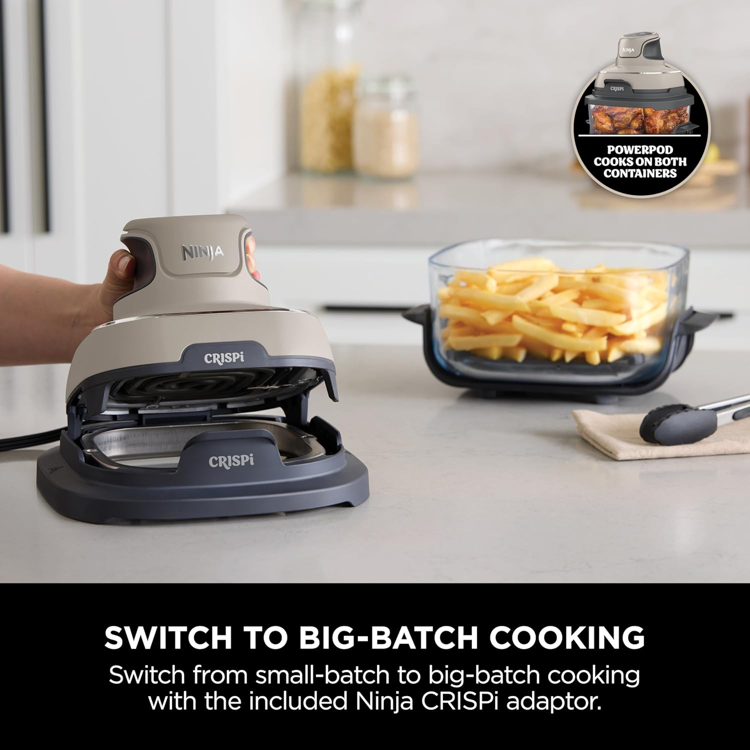 Family meals. Personal portions. Swappable containers: Swap between the 3.8L large container for bigger portions, and the 1.4L small container for smaller portions or cooking sides. Cook a personal meal in under 15 minutes, or cook a whole 1.2kg chicken and vegetables. The CRISPi PowerPod senses which TempWare container you’re using and adjusts the cooking temperature accordingly. Perfect for small or big-batch cooking, meal-prepping, snacks, party food, and so much more.