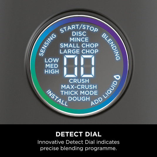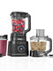• Includes: 1200W motor base, 2.1L* jug, 1.8 Food Processor Bowl, 3x 700ml Single-serve cups, Ninja Detect Total Crushing & Chopping Blade, Chopping Blade, Dough Blade, Slicing/Shredding Blade, Hybrid Edge Blades & Recipe Guide